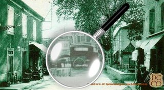 À droite, sur la terrasse devant l'actuel cabinet notaire, on distingue une pompe à essence à l'ancienne, modèle SATAM. Initialement l'automobiliste devait acheter son essence en bidon à la pharmacie. Les premières pompes apparaissent seulement à partir de 1922. Elles étaient placées chez des débits de tabac, des épiciers ou devant des terrasses de café. Ainsi il était possible à faire le plein et à la fois acheter son pain, son tabac ou boire un verre ... source: Alice Team-Crz. |