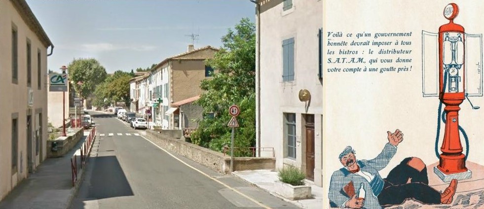Avenue de l'Argent Double à Caunes août 2018 ©Google2021 Publicité Satam novembre 1925: Faire le plein et boire un verre