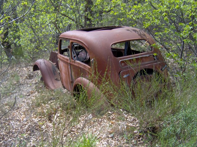 Ce mois-ci deux photos d'une épave à Peyriac-Minervois. Il s'agirait d'une Rosengart, une marque automobile française tombée dans l'oubli.